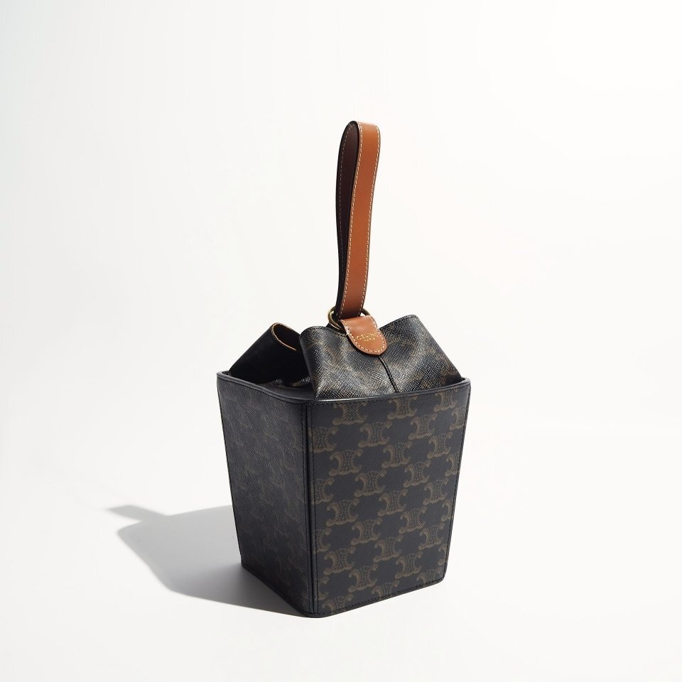 - R4657P ▼CELINE セリーヌ▼ トリオンフキャンバス ストラップボックスバッグ ブラック ブラウン / ワンハンドル スモール rb mks