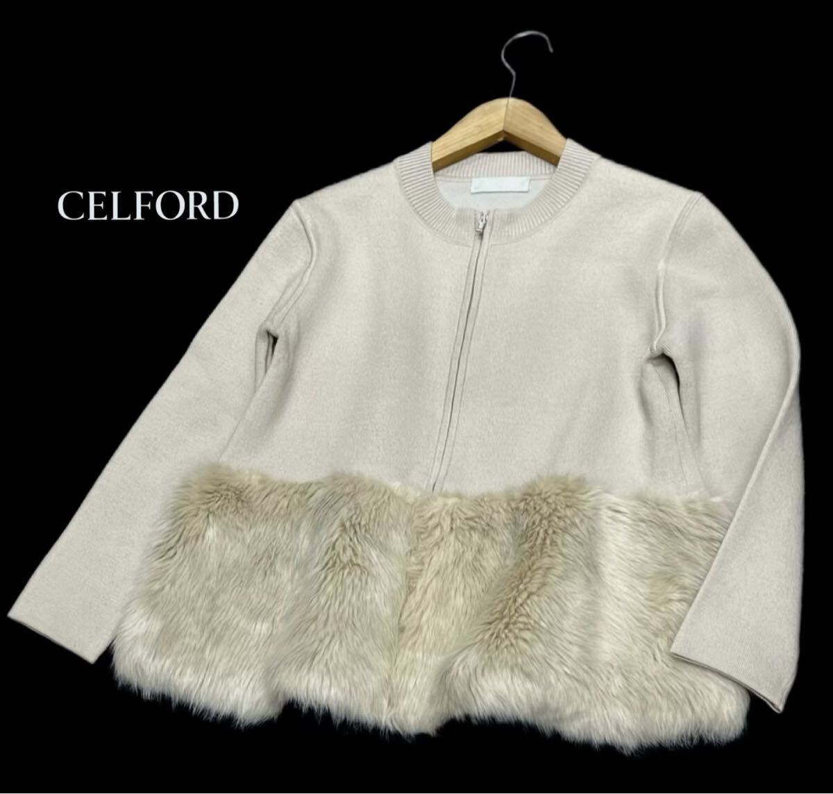 - CELFORD★セルフォード★(38)裾エコファー ジップアップ ニット ジャケット/アイボリー系