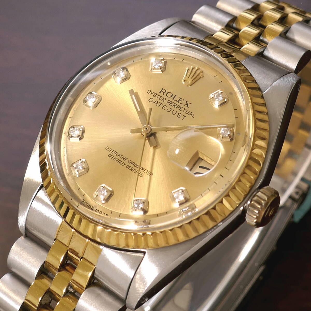 > デッドS級極美品!!★OH済!■ROLEX デイトジャスト■10Pダイヤ ゴールド文字盤■R1601