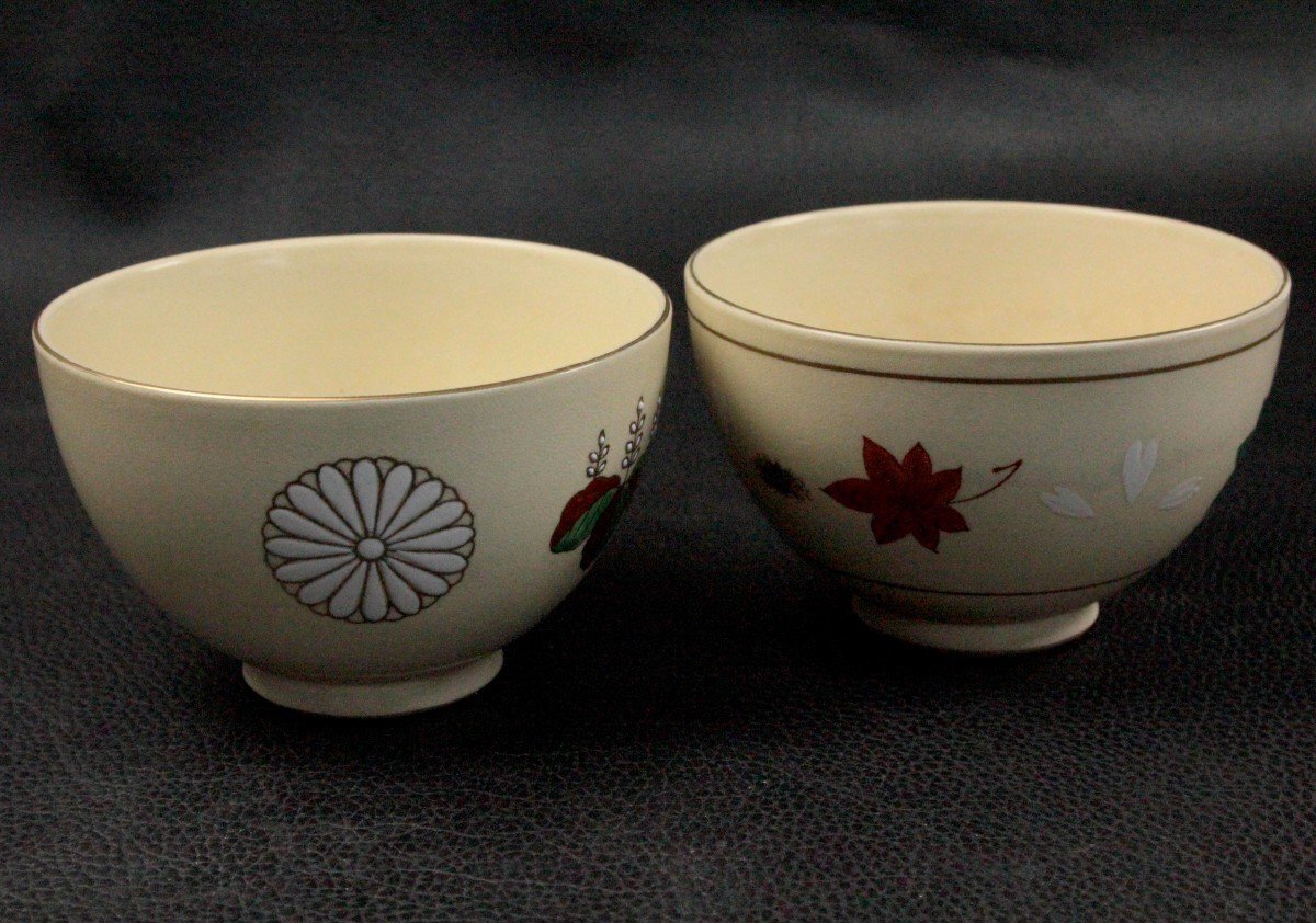 - [2点セット] 龍靖 京焼 色絵 金彩 春秋 茶碗 抹茶椀 茶道 茶道具 茶器 伝統工芸 レトロ 骨董 アンティーク