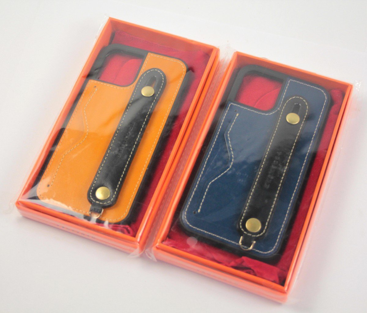 > [2点セット 未使用品] HANATORA iPhoneケース 12Pro ベルトケース バンド ネックストラップ ブルー オレンジ