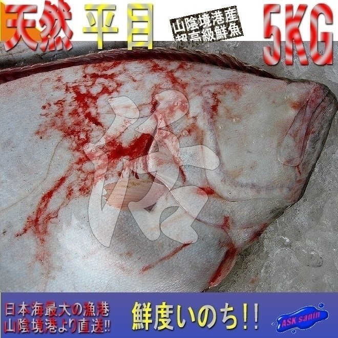 - お刺身用、巨大「天然平目3-5kg」代引き発送(不定貫 キロ売り)山陰境港産