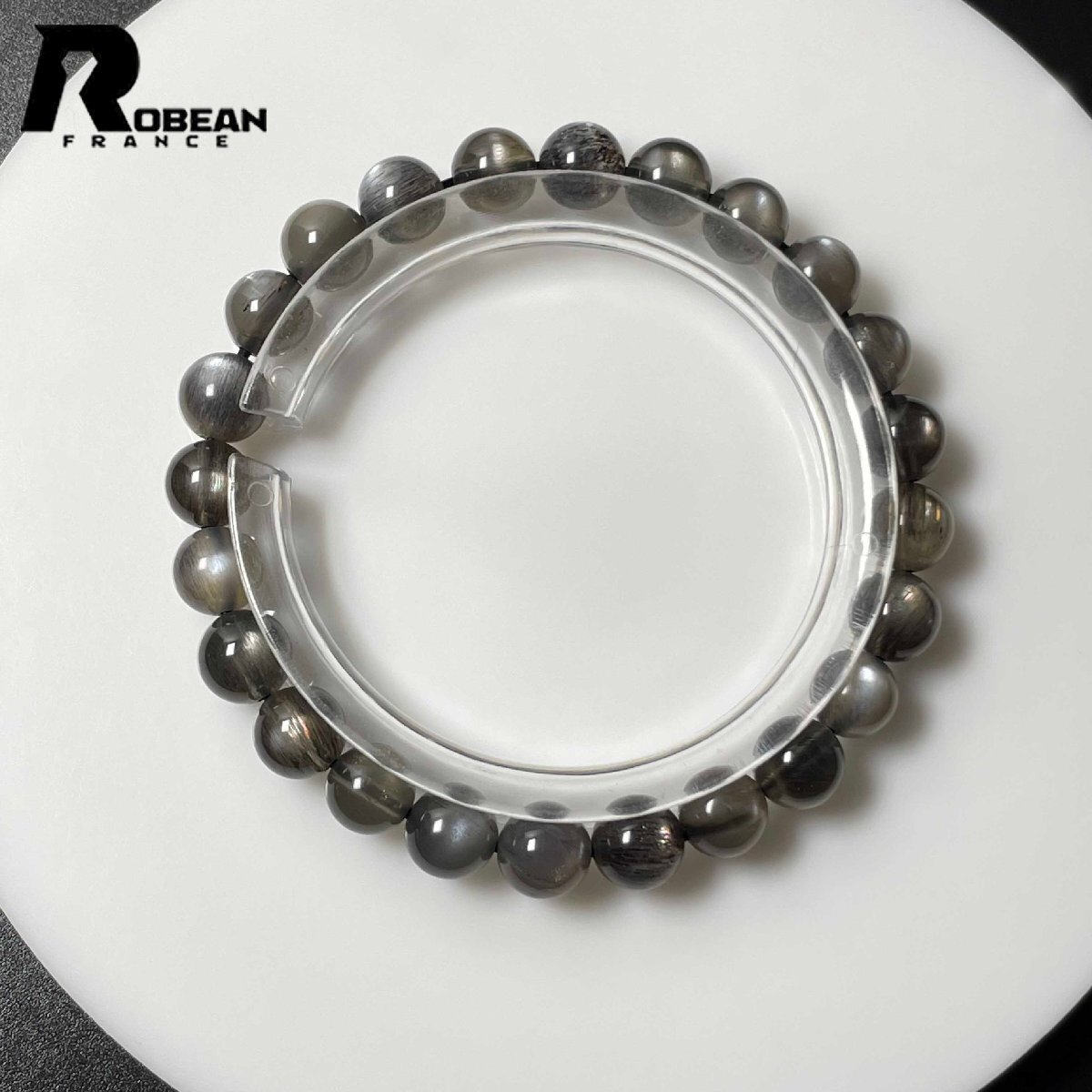 > 絶賛 EU製 定価6万円★ROBEAN・グレーサンストーン★パワーストーン ブレスレット 天然石 高級 お守り ギフト 7.5-8mm L0227143