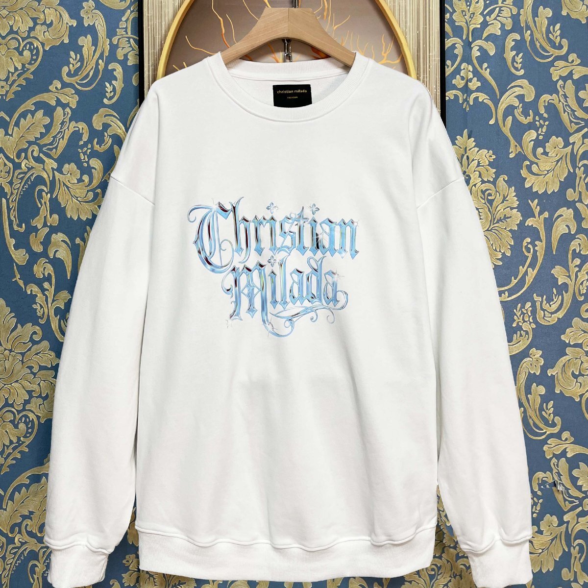 - 定価4万★christian milada・ミラノ発・トレーナー★エジプト綿100% 柔らか ロゴ ゆったり カジュアル 長袖tシャツ トップス 日常 秋冬XL