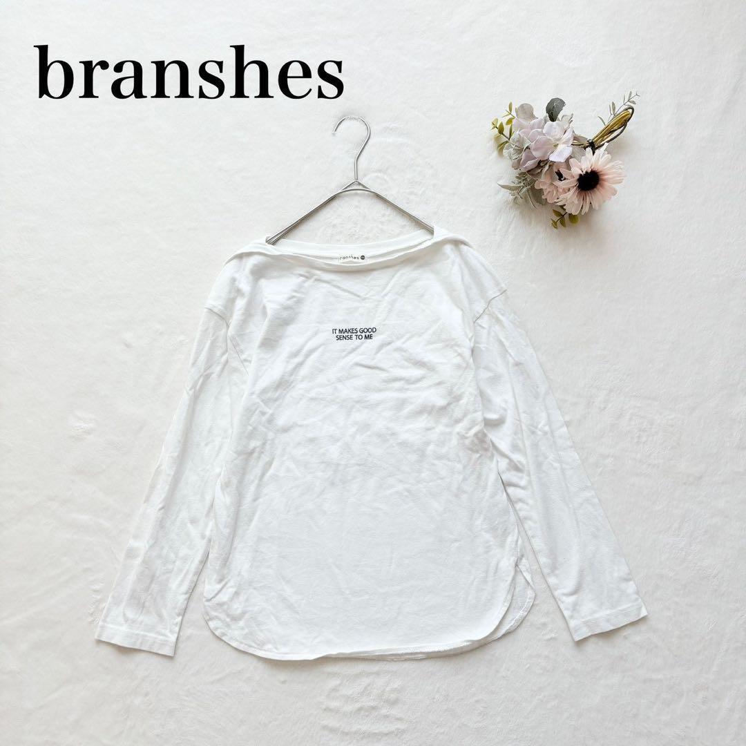 - 【ブランシェス】ボートネックカットソー(140)英字 ロゴ シンプル 白 長袖 DC7F41