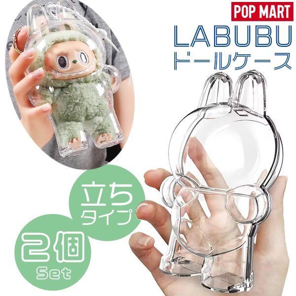 - LABUBU 保護ケース ラブブ立ちタイプ 2個 ストラップ付き/ぬいぐるみ透明ケースプロテクター ポップマート POP MART ぬい活 1/2/3世代対応