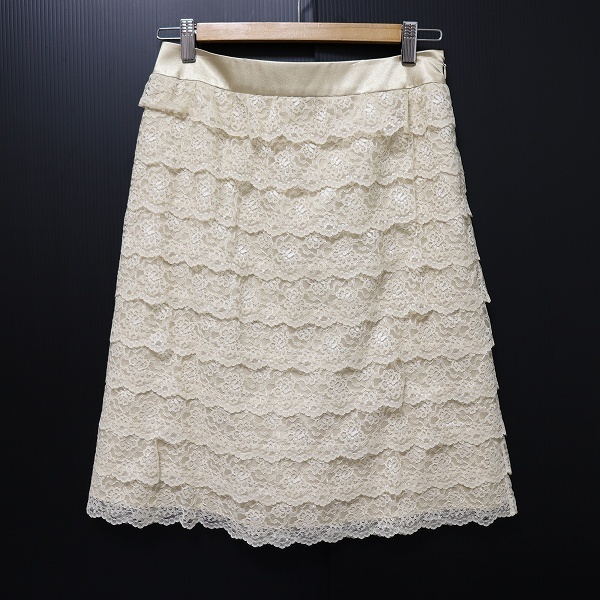 ◎商品名(タイトル):フランコフェラーロ FRANCOFERRARO スカート フリル レース [a957038n]◎ブランド名:フランコフェラーロ (FRANCOFERRARO)◎アイテム名:スカート◎サイズ:2◎性別:レディース◎カラー:薄いゴールド系◎素材:画像をご参照ください◎実寸サイズ:ウェスト約 34cm×2・スカート丈約 58cm◎商品コメント:★当店の商品はすべてリユースアイテムとなります。特質上、些細なダメージは記載しておりませんので着用に問題のない使用感、着古した雰囲気などはご了承下さいませ。◎コンディションレベル:目立った傷や汚れなし◎コンディション備考:-キーワード/アクイール/古着/used/ビンテージ/ヴィンテージ/昭和/レトロ/総レース
