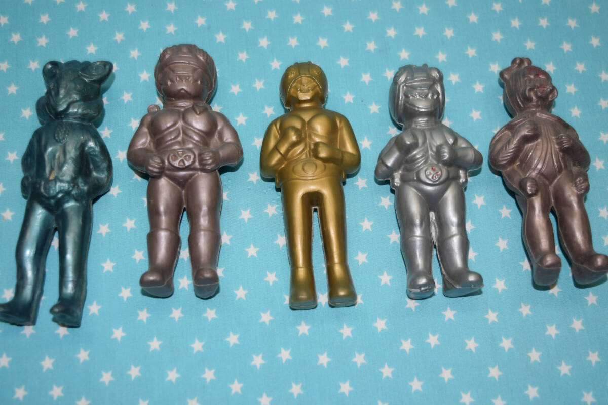 - 1606】当時 パチもの 仮面ライダー&怪人 ソフビ5体セット/プラスチック★絶版 丸越 バンダイ ビンテージ マスダヤ タカトク ポピー 文具