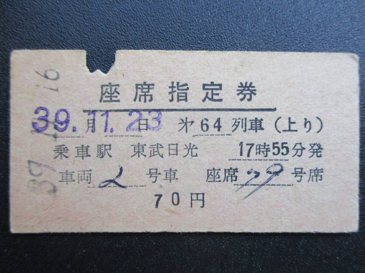 - ☆ 東武鉄道 第64列車・座席指定券(上り:東武日光)