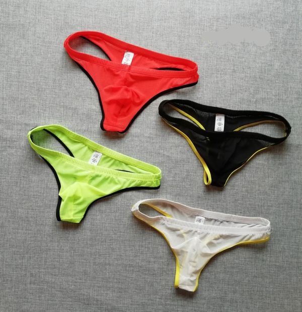 > ★ 【新品・未使用】 メッシュ Tバック 4色セット Mサイズ メンズ ビキニ 下着 セクシー ブリーフ 3D 立体 速乾 透け