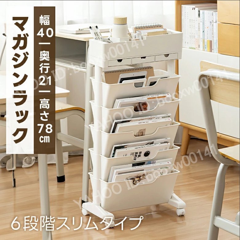 - マガジンラック キャスター付 オープンラック 書類収納ラック ファイルワゴン ロック機能付き ブックスタンドラック ピンク hhw0043.2