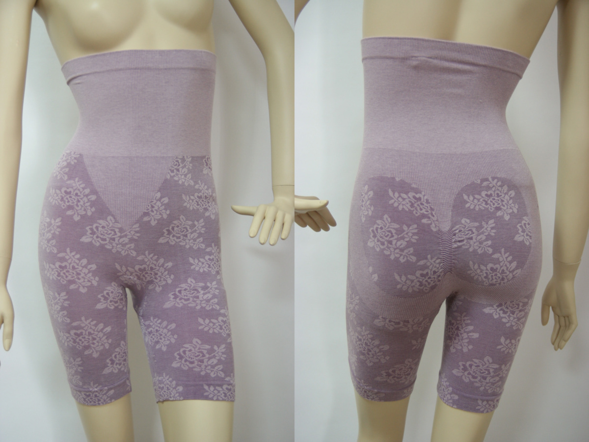 - 送料無料◆2枚組◆ウエストシェイプ◆成型ロング丈パンツ(M/ラベンダー)◆綿混素材◆お腹すっきり&ヒップアップ◆花柄ジャガード織り◆