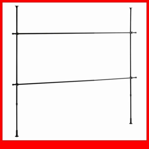 > ハンガーラック★新品/シンプル つっぱりハンガーラック 2段 幅170~250cm 高さ調整可能/ビス止め不要 賃貸OK/ブラック/a1