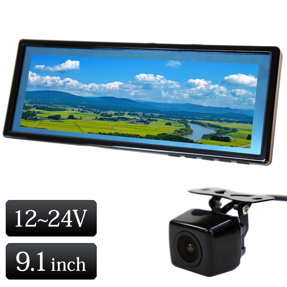 - バックミラーモニター モニター セット ルームミラーモニター 9.1インチ 12V 24V バックカメラ 角型 カメラ 連動 トラック対応 B391C859B