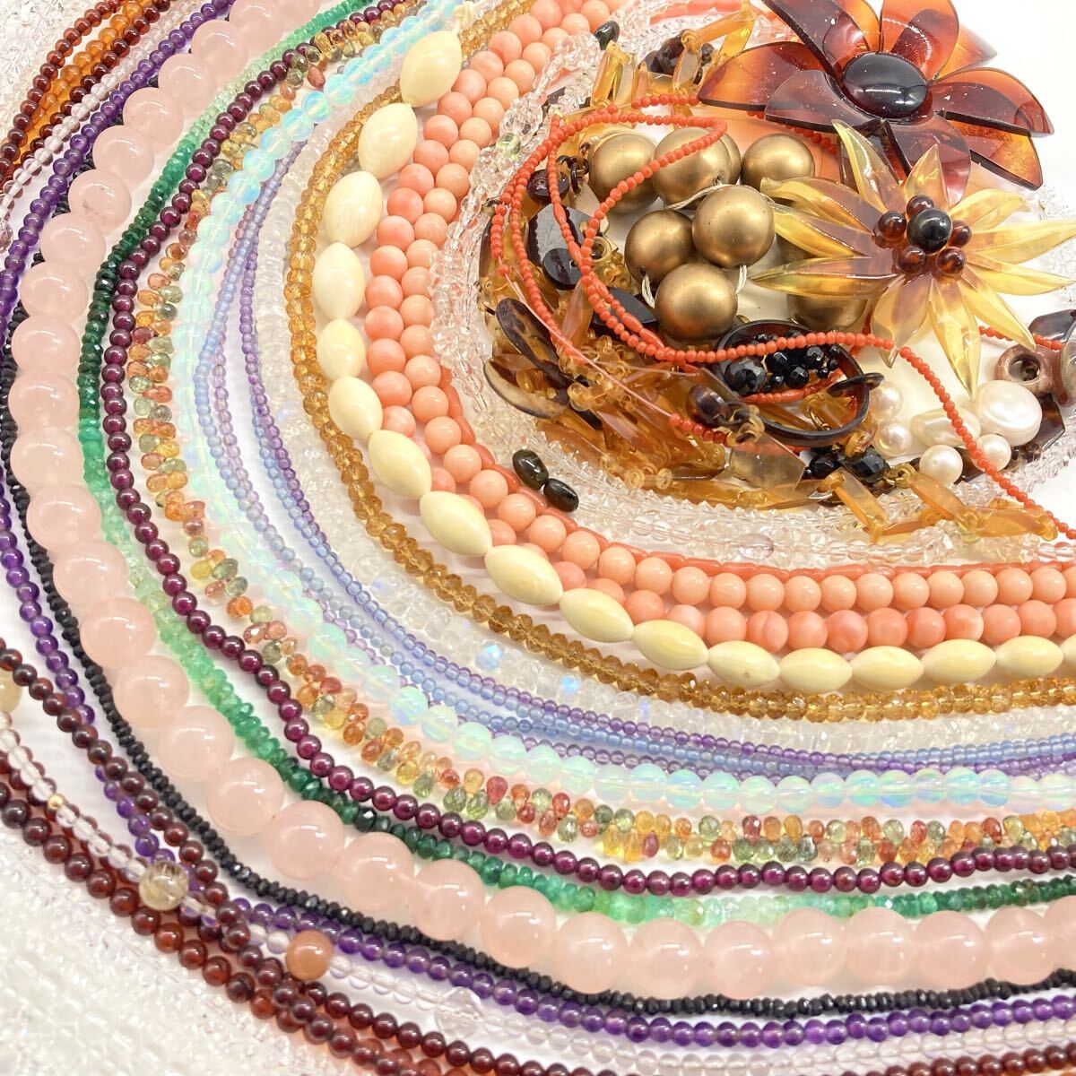 > エメラルド/カラーサファイア入り!!■アクセサリーパーツおまとめ■ d 約391.7g ネックレス 珊瑚 オパール べっ甲 琥珀 ガーネット C168