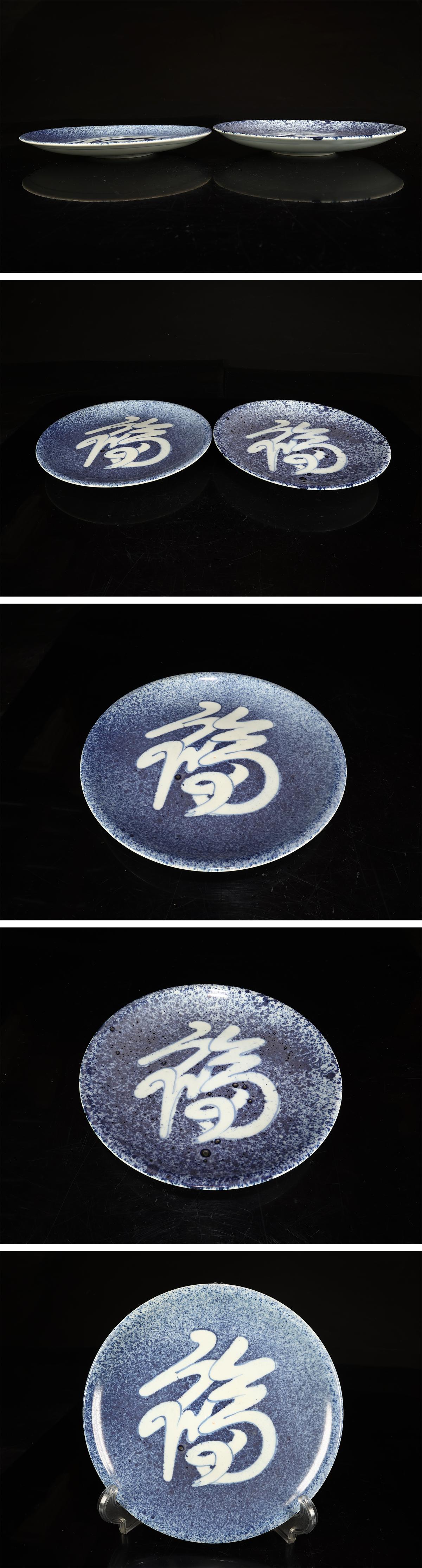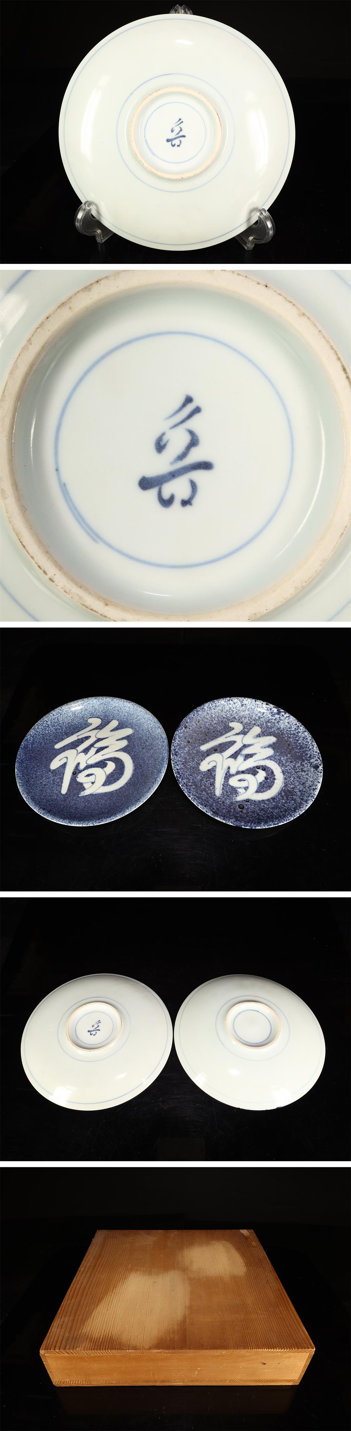 - 【吉】CL214 【北大路魯山人】 染付 福字文 皿 2点 一対 幅22㎝/美品S!