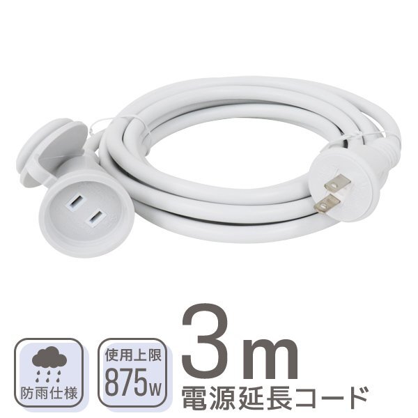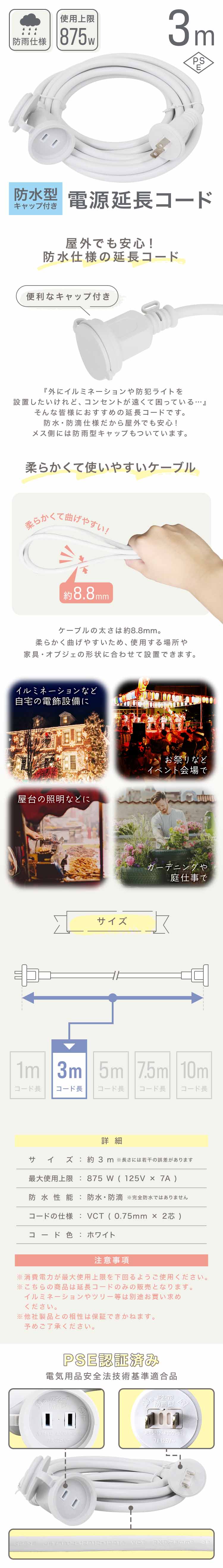 - 電源延長コード 延長ケーブル 延長コード 屋外 3m 電源 コード 屋内 屋外 電源コード アウトドア イルミネーション PSE認証 新品 未使用