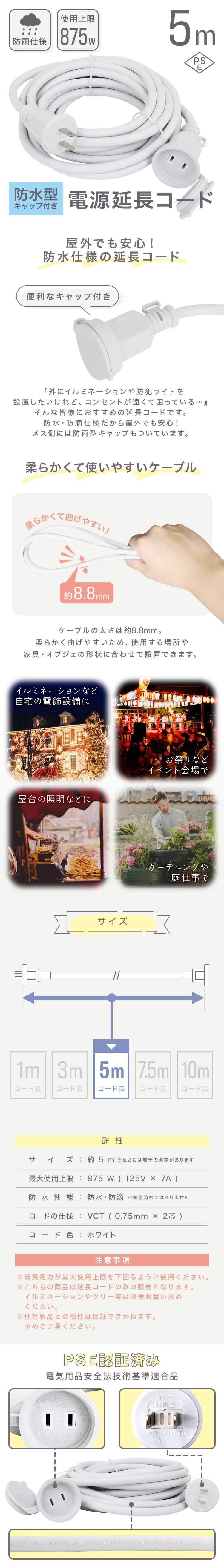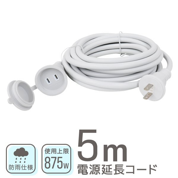 - 電源延長コード 延長ケーブル 延長コード 屋外 5m 電源 コード 屋内 屋外 電源コード アウトドア イルミネーション PSE認証 新品 未使用