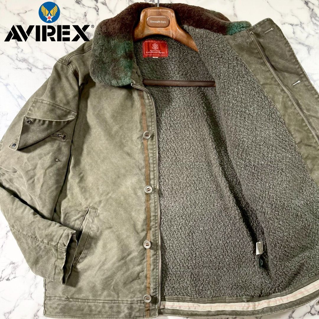 - N-1/デッキジャケット(L)●AVIREX 襟ムートン カーキ アヴィレックス ボア ミリタリー ボア ブルゾン アウター フライト USN NAVY メンズ