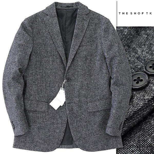 - 新品 タケオキクチ ウール ホームスパン テーラード ジャケット XL 灰 【J42171】 THE SHOP TK 秋冬 メンズ ツイード サキソニー グレー