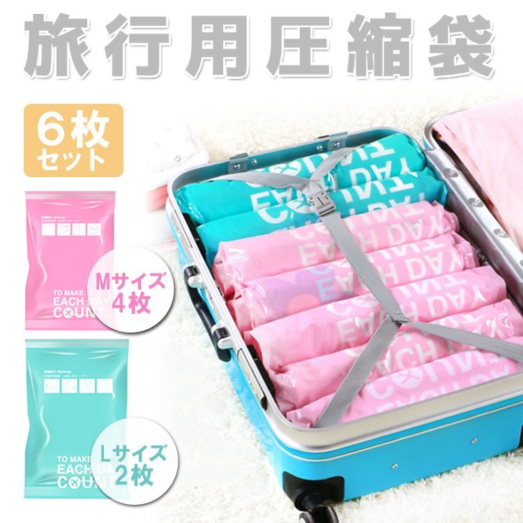 > 旅行用圧縮袋 6点セット 衣類圧縮袋 サイズM4枚 L2枚 トラベル圧縮袋 掃除機不要 巻くだけ 旅行 出張 引っ越し 衣替え TSTRG06S