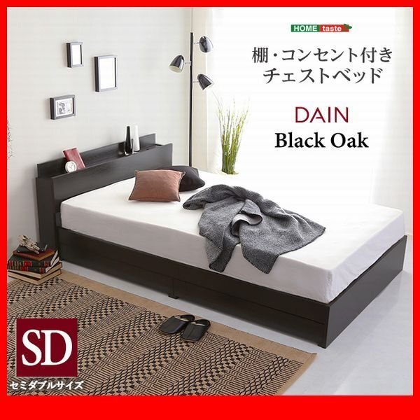 - シングルベッド★宮棚・2口コンセント付きチェストベッド セミダブル フレームのみ/収納 引き出し2杯 抗菌・防臭機能/ブラックオーク/zz
