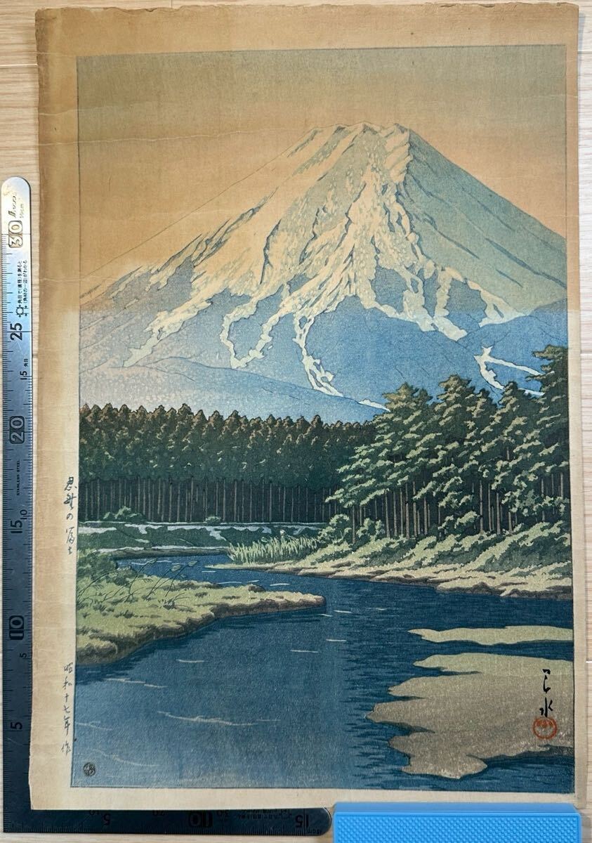 - 【真作】忍野の富士 6mm印 昭和十七年 川瀬巴水 浮世絵 ukiyo-e 木版画 新版画 名所絵 風景画 富士山 中国唐物唐本 古筆古文書和本 #1733