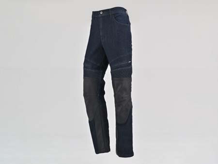 レザー補強がアクセントのバイク専用ヒートガードデニム。
