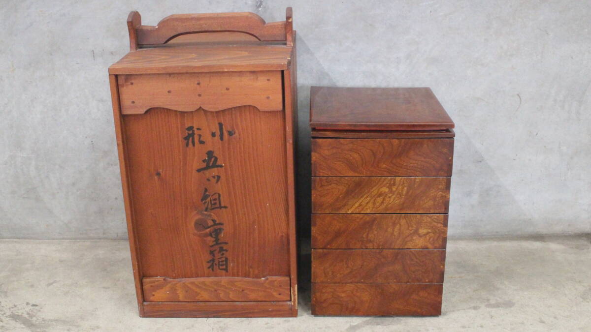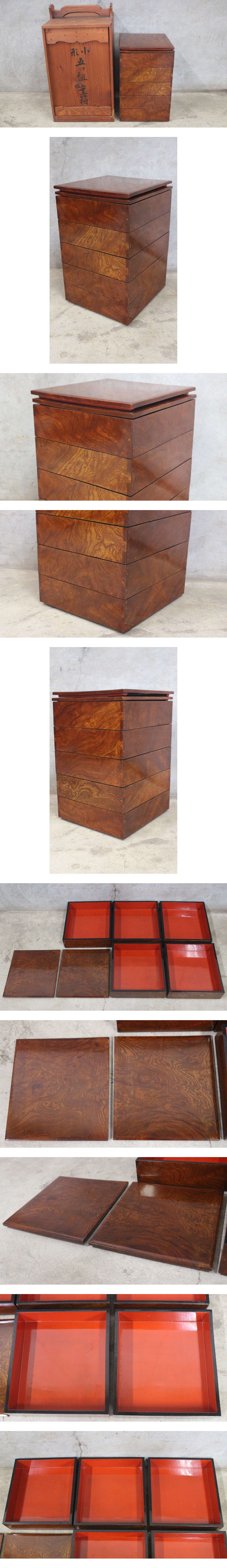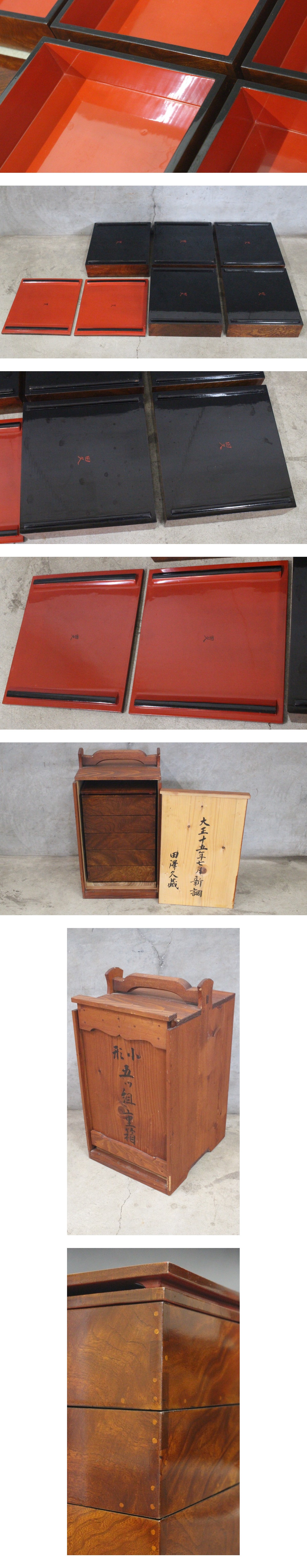 - 大正十五年 黒朱漆塗 木製欅材 5段 重箱 時代物 漆器工芸品 テ53