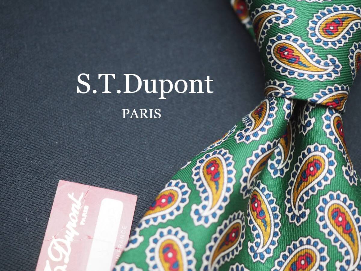 - 未使用品【S.T.Dupont デュポン】 G2414 グリーン系 ペイズリー SILK ブランド ネクタイ 古着 良品 転売 仕入