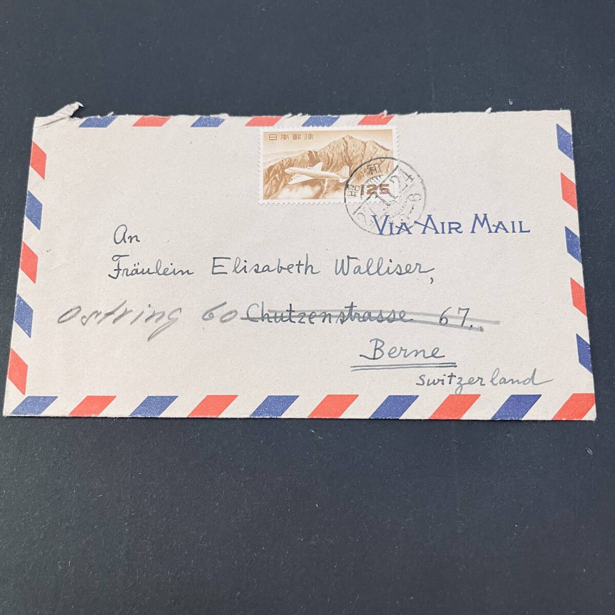 - 円位立山航空125円単貼 第四地帯スイス宛航空書状使用例 櫛型 昭和 1952年 発行年 エンタイア