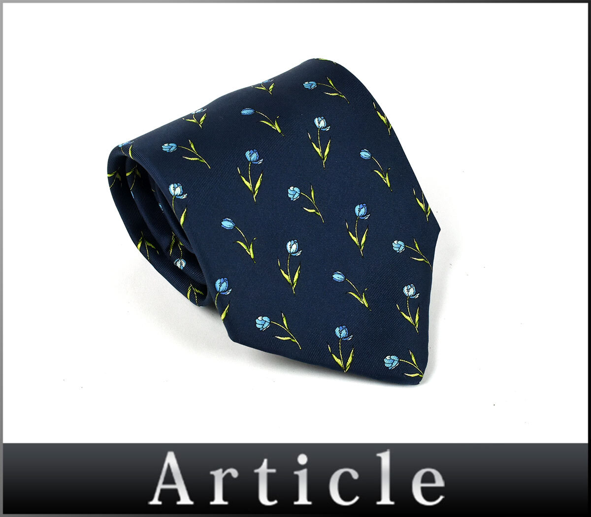 > 241879〇未使用 Christian Dior クリスチャン ディオール フラワー 花柄 総柄 ネクタイ シルク ネイビー ブルー メンズ 小物/ G