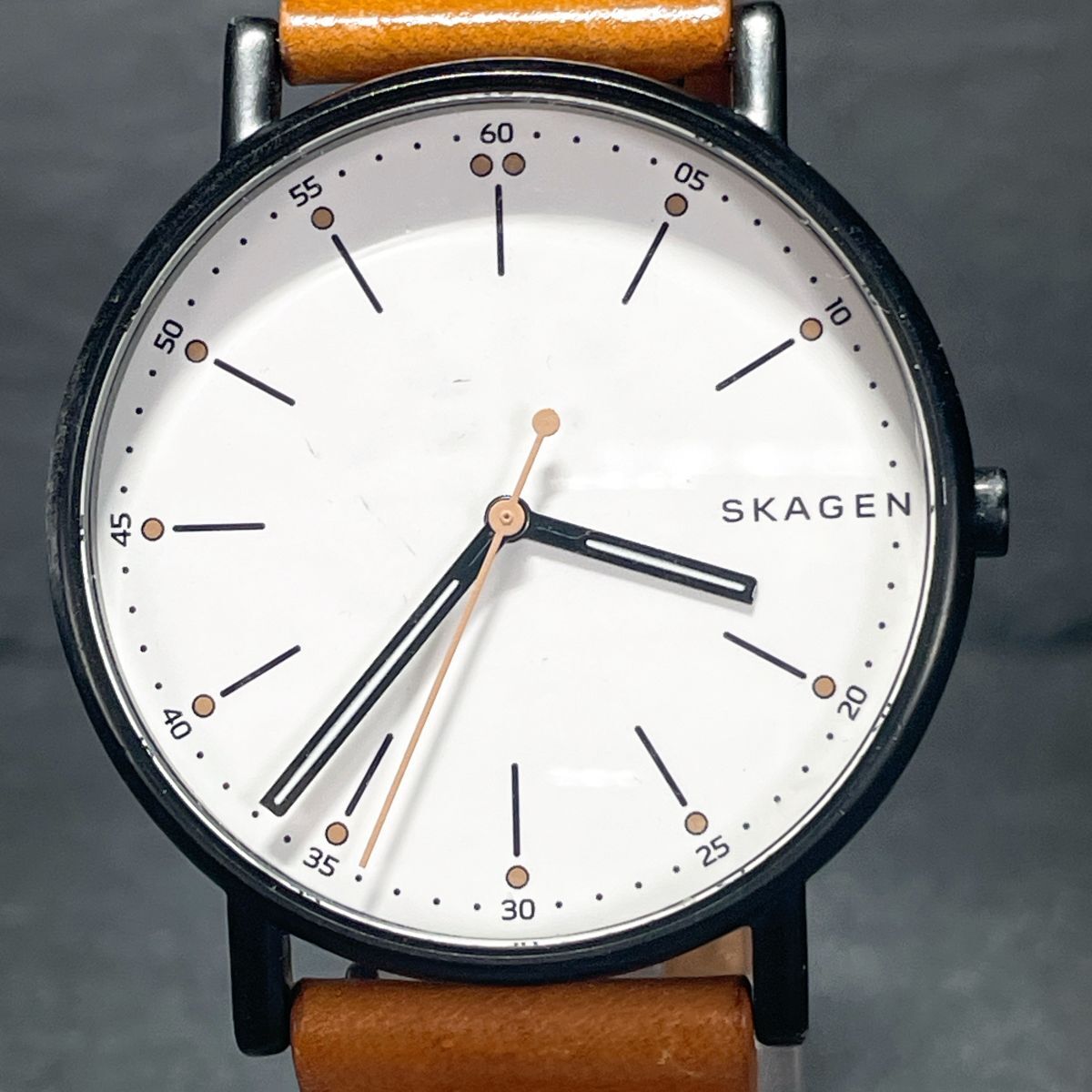 - SKAGEN スカーゲン SKW6352 腕時計 アナログ クオーツ 3針 ホワイト文字盤 レザーバンド ブラウン 新品電池交換済み 動作確認済み