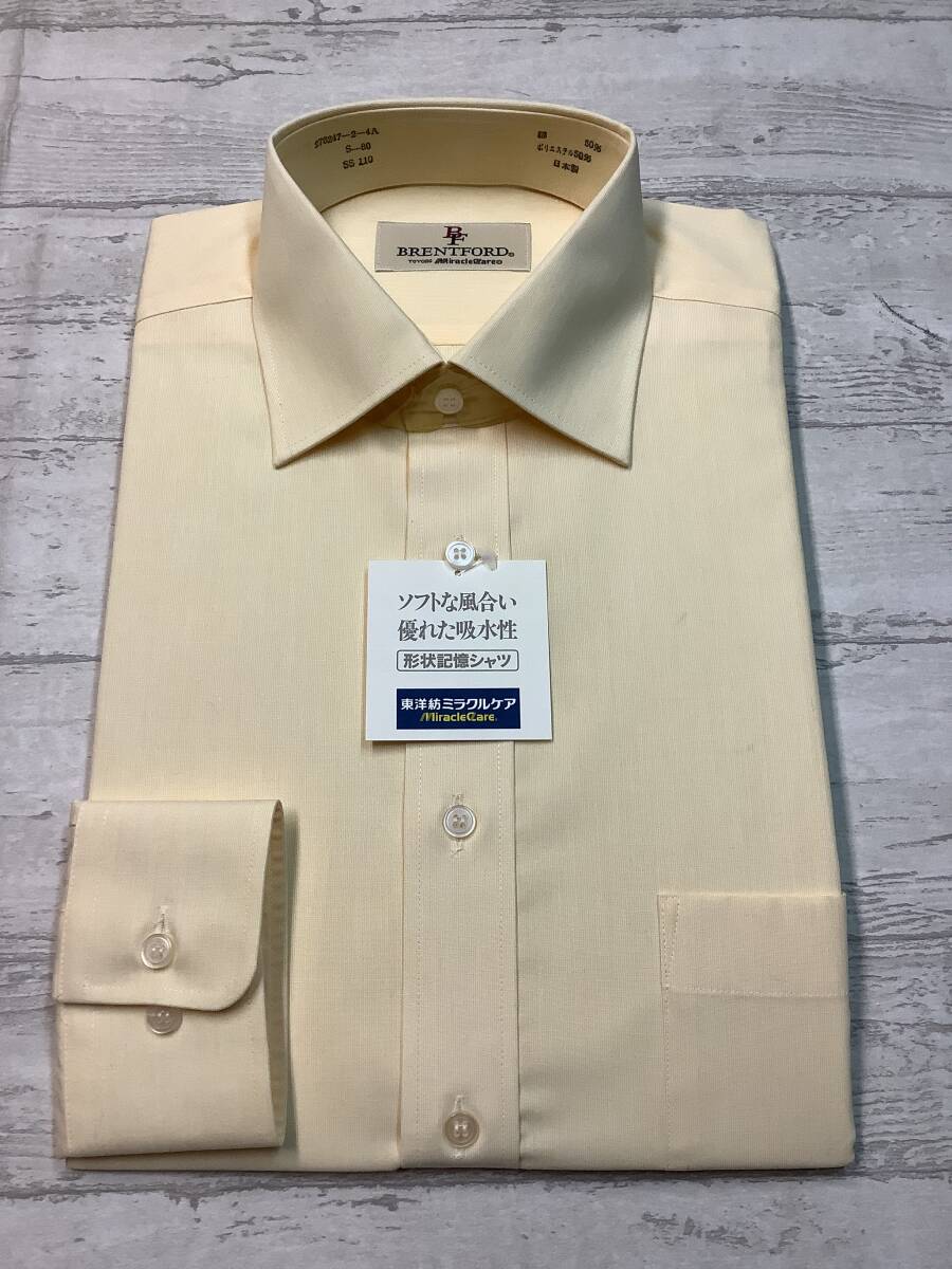 - P 新品未使用 37-80 Sサイズ カッターシャツ ワイドワイシャツ 形状記憶 クリームイエロー 綿ポリ