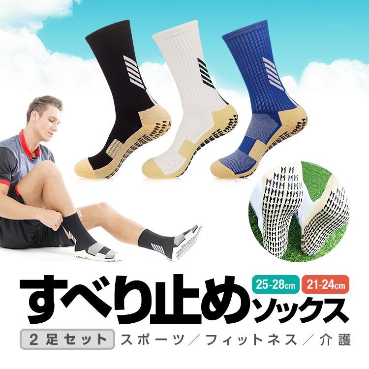 - 滑り止めソックス 2足セット グリップソックス 青/白/黒 スポーツソックス スポーツ/トレーニング/フィットネス【黒S】GPSOC02S