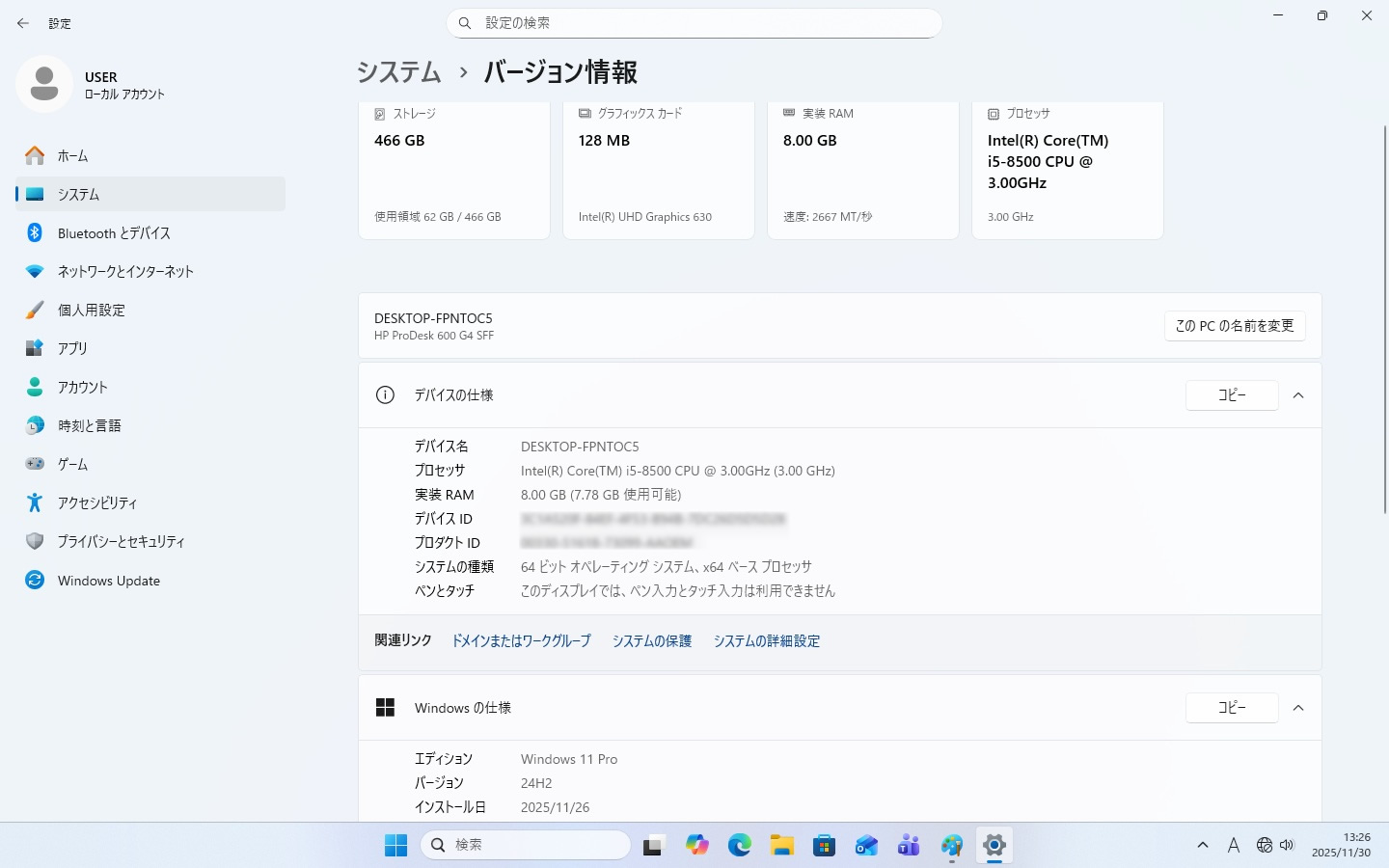 - 【Win11Pro 64bit】HP ProDesk 600 G4 SFF Core i5-8500 3.00GHz コアの数6 8GB HDD500GB[M1074]