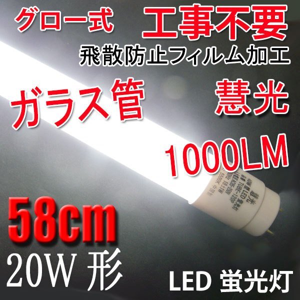- LED蛍光灯 20W形 直管58cm ガラスタイプ グロー式工事不要 20型 LEDベースライト 昼光色 LED 蛍光灯 TUBE-60PB-D