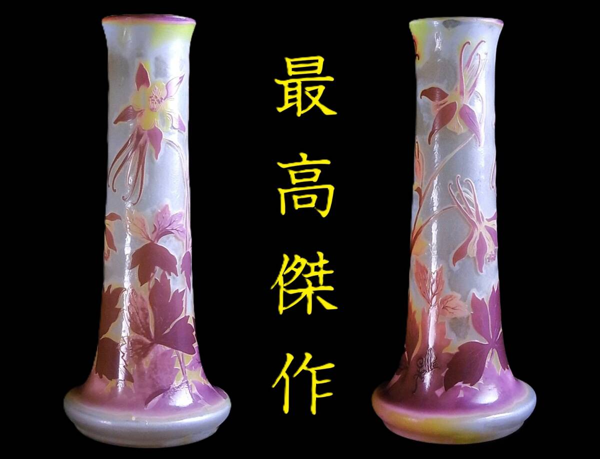 - エミール・ガレ真作 ダイナミックな最高傑作 1904年~14年 オダマキ文花器 12/11 (木)終了
