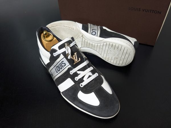 - ヴィトン 7.5 LOUIS VUITTON ♯GO0161 ダークグレー×オフホワイト コンビレザースニーカー 1592