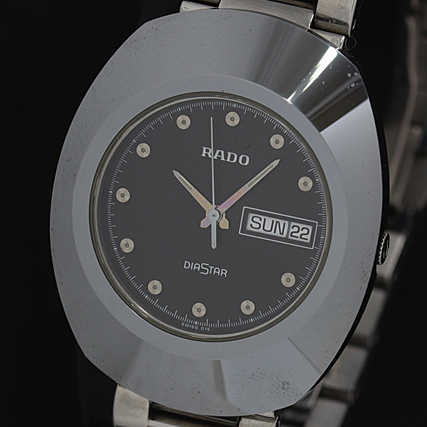 > 1円 稼働 ラドー ダイヤスター 114.0391.3 QZ デイデイト 黒文字盤 メンズ腕時計 8948000 3APT KRI