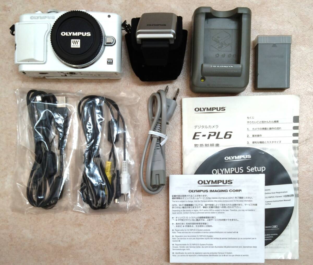- ◇ OLYMPUS オリンパス PEN Lite E-PL6 デジタル ミラーレス一眼カメラ ボディ ホワイト バッテリー・充電器・フラッシュ付 ◇