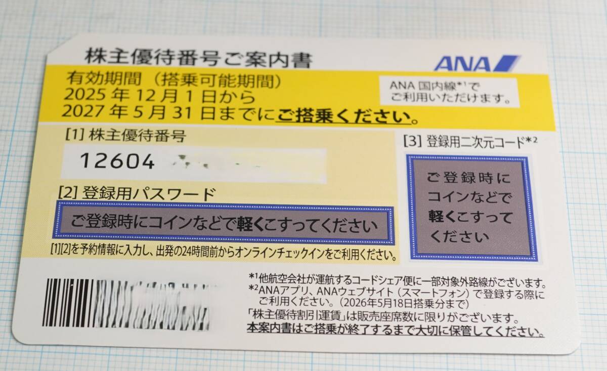 - ANA株主優待券 1枚 2027年5月31日まで 大網てんとう虫 258-12