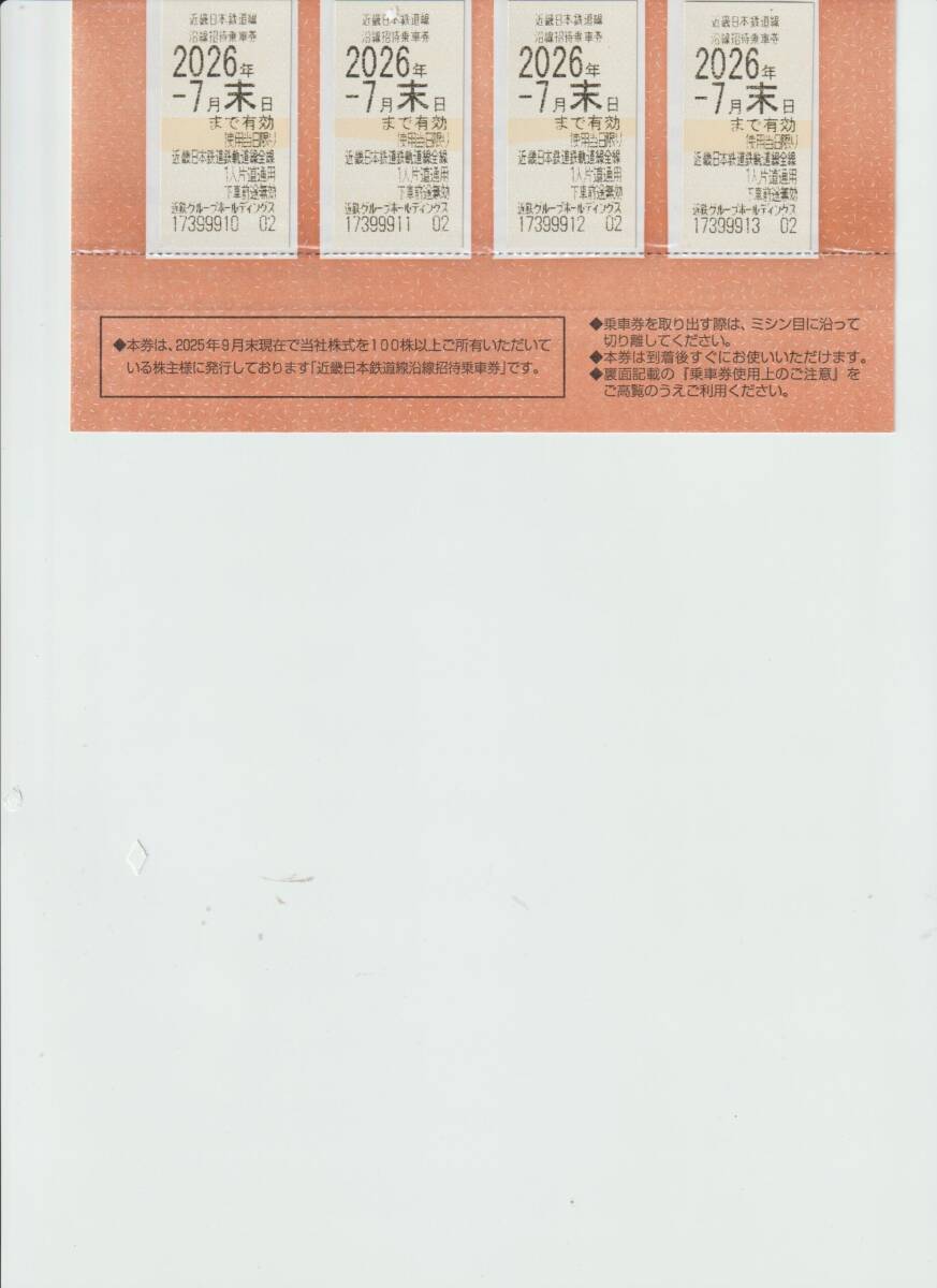 - △▼送料無料▼近鉄株主優待乗車券4枚+優待冊子1冊▼有効期限2026年(令和8年)7月末日まで▼- 1 -▼△