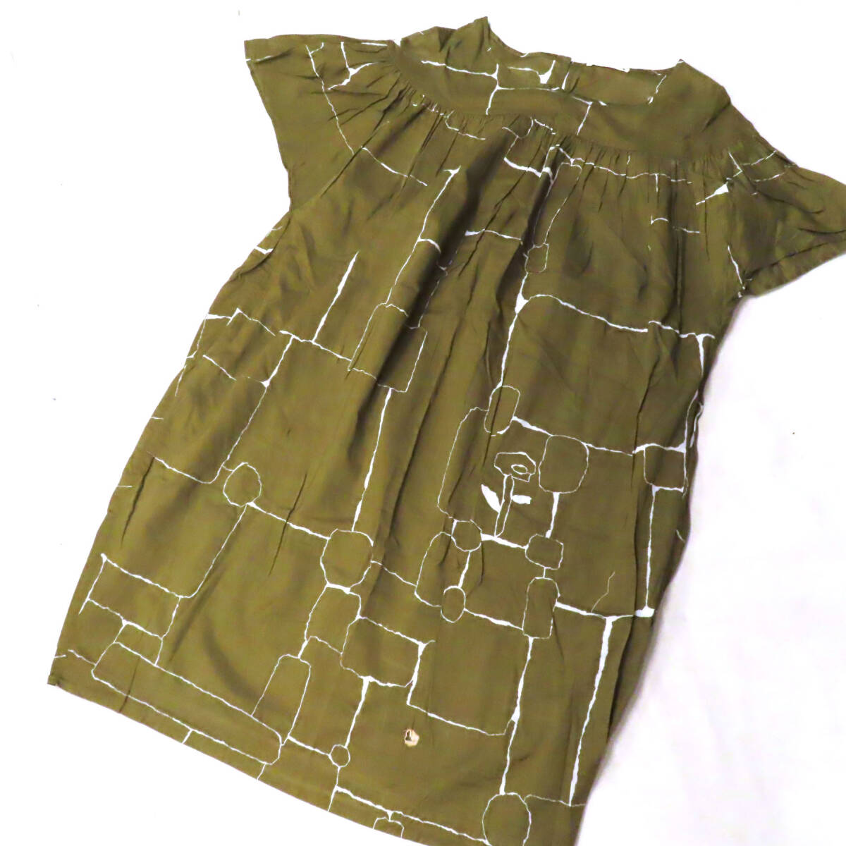 > WC26270 mina perhonen ミナペルホネン チュニック カットソー ワンピース フレンチ袖 総柄 コットン size36 カーキ 日本製 レディース