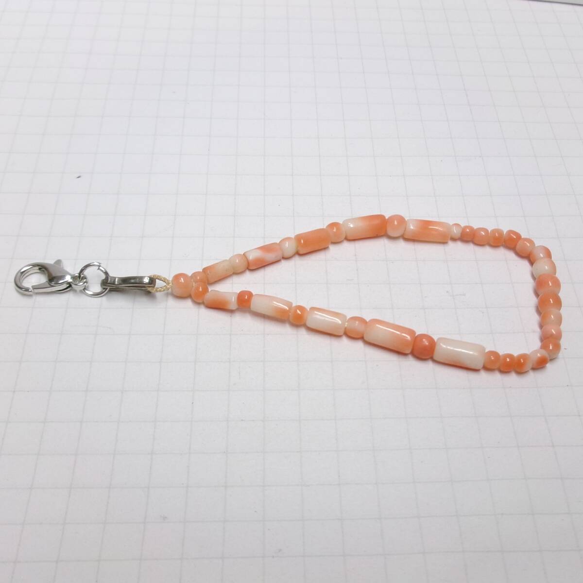 - ピンクサンゴ コーラル 珊瑚 ストラップ 大網てんとう虫 3108