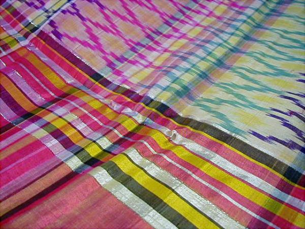 - インドネシア・南スラウェシ州ボネ県のシルク製織り布(ピンク黄