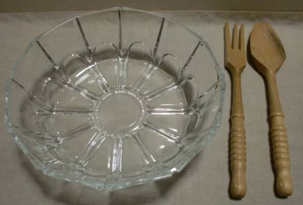 - ★シンプル ガラス製 サラダボウル ガラス盛鉢 23.5cm サーバー付 硝子 中鉢 工芸品 レトロ★