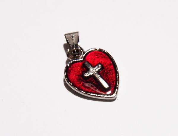 - イタリア製/銀色xハートレッドクロス十字ペンダントトップ/ミニ