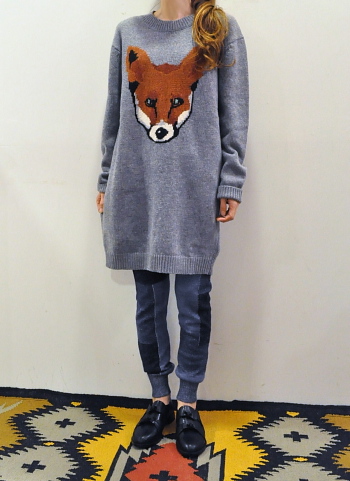 - Peter Jensen ピーターイェンセン キツネ柄 ワンピース グレー