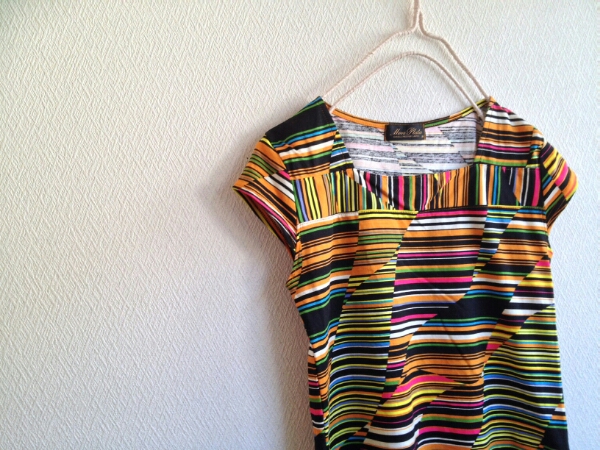 - ★日本製★カラフルなデザインのスクエアネックカットソー★M★